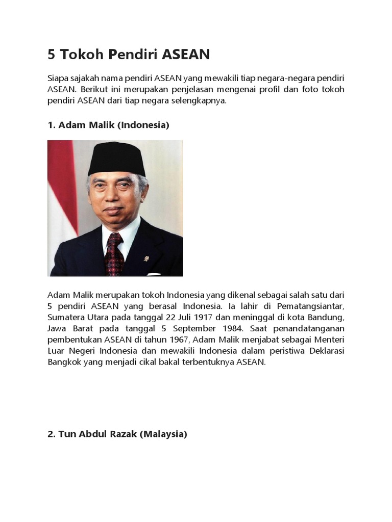 5 Tokoh Pendiri Asean Disertai Foto Profil Pribadi Negara