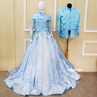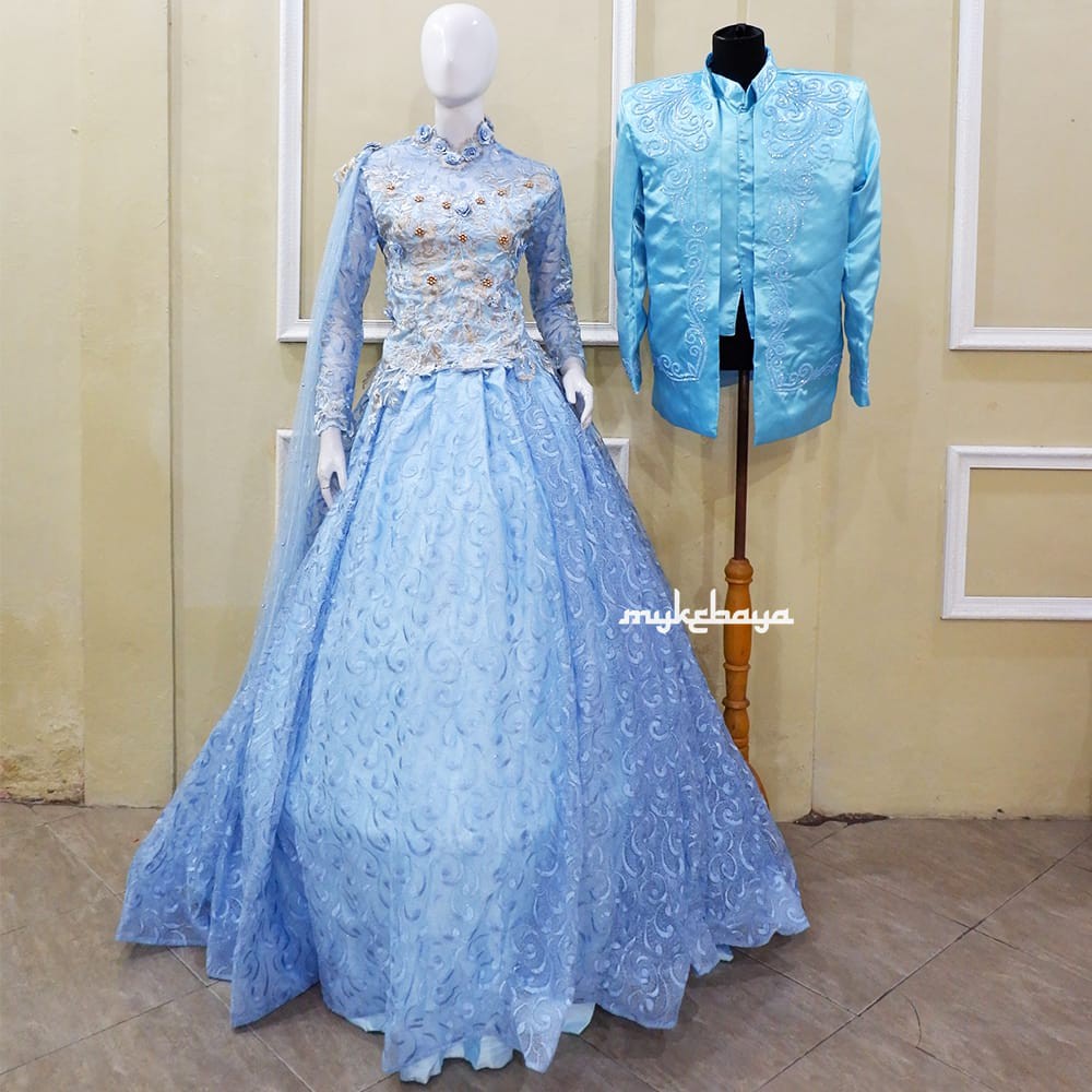 Ready Couple Baju Pengantin Baby Blue Cantik Sepasang Kebaya