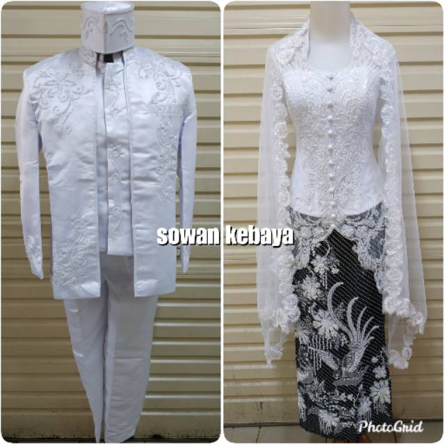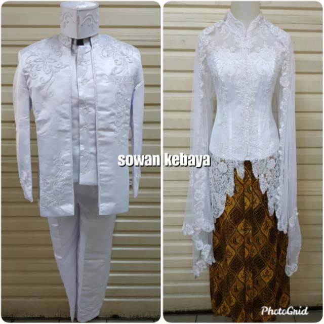 Kebaya Couple Pengantin Muslim Akad Nikah Ijab Kabul Putih Modern