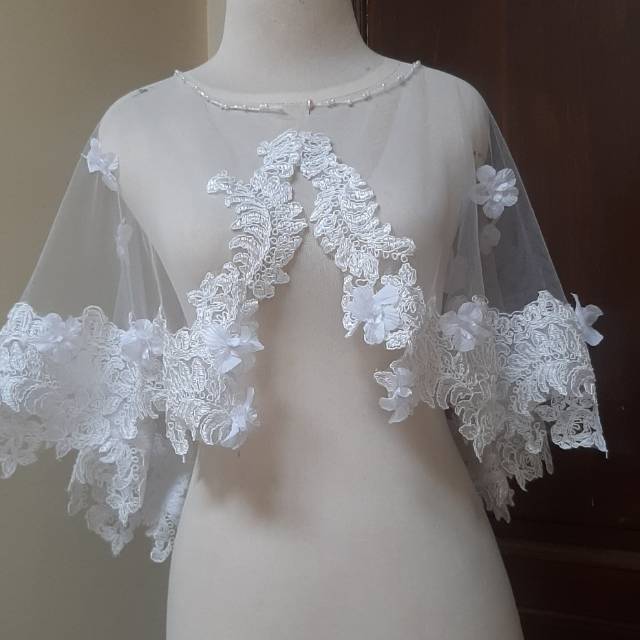 Baju Pengantin Kebaya Wedding Cape Tulle Putih Cape Pengantin