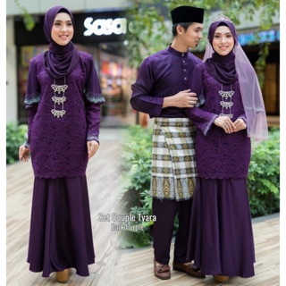 Dark Purple Baju Akad Nikah Sedondon Set Couple Kurung Moden