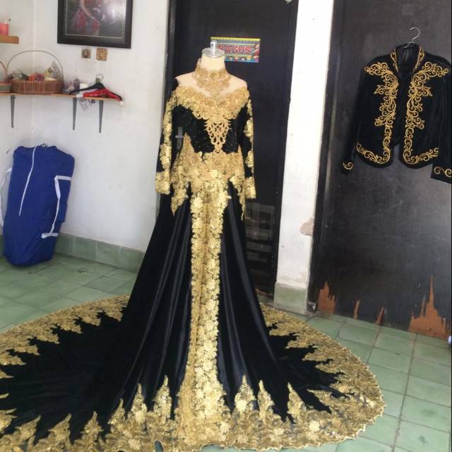 Kebaya Pengantin Bludru Hitam Gold Sepasang Kebaya Resepsi Pernikahan Shopee Indonesia