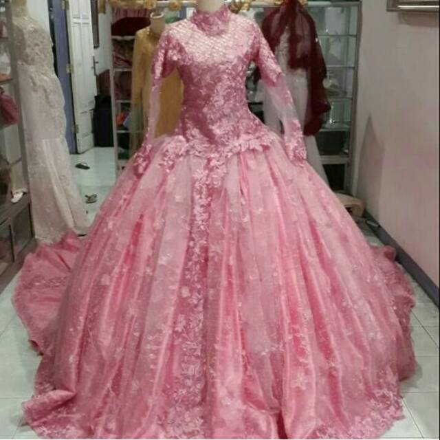 Jual Baju Pengantin Pink Silver Ekor Kota Magelang Lya