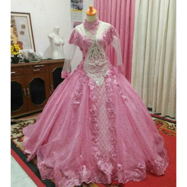 Jual Gaun Kebaya Pengantin Barbie Full Baby Pink Ready Kab