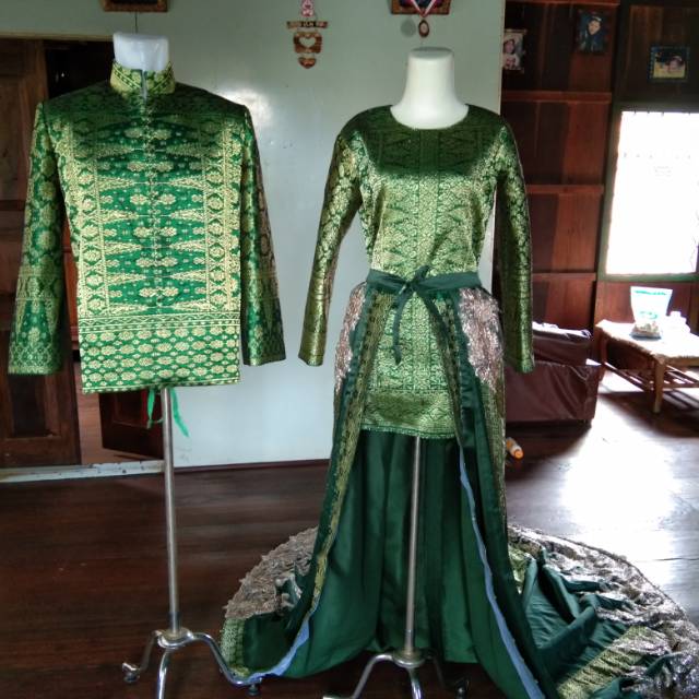 Baju Pengantin Palembang Songket Warna Hijau Dan Ekor Songket