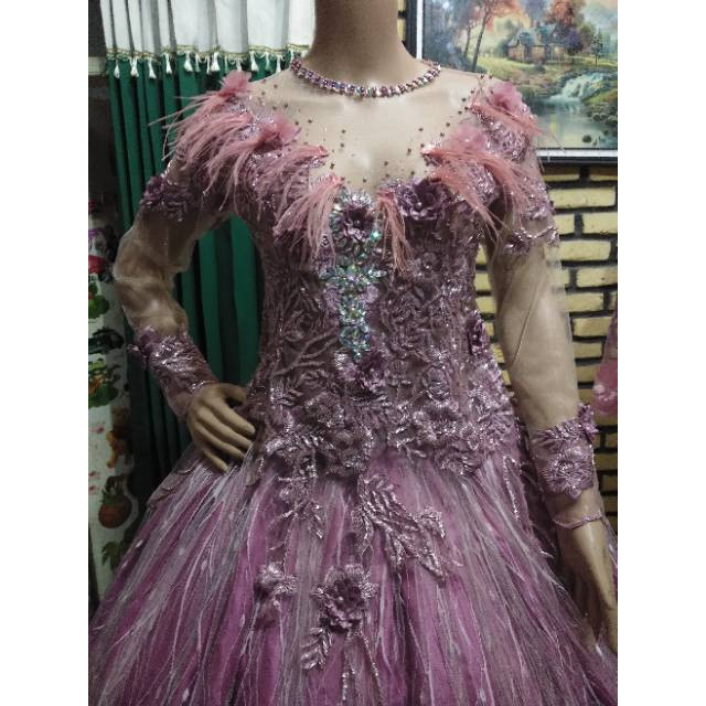 Jual Gaun Pengantin Warna Dusty Purple Bulu Ekor Panjang Jakarta