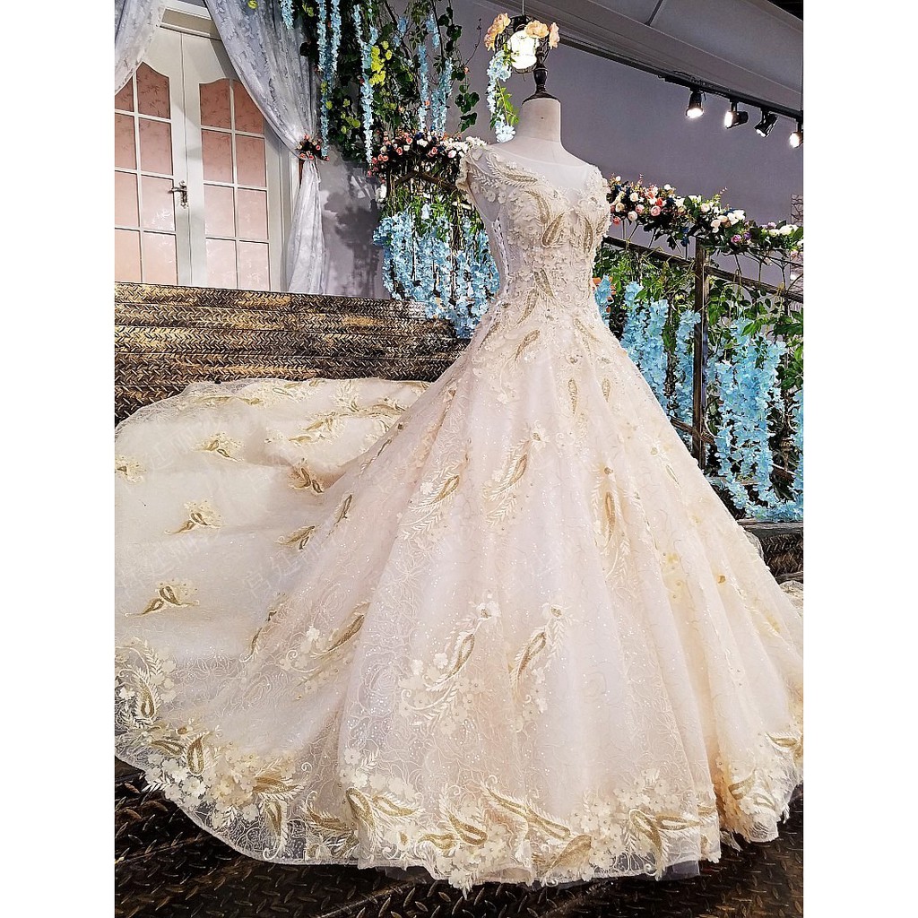 Jual 1707014 Cream Gold Ekor Gaun Pengantin Wedding Gown Dress