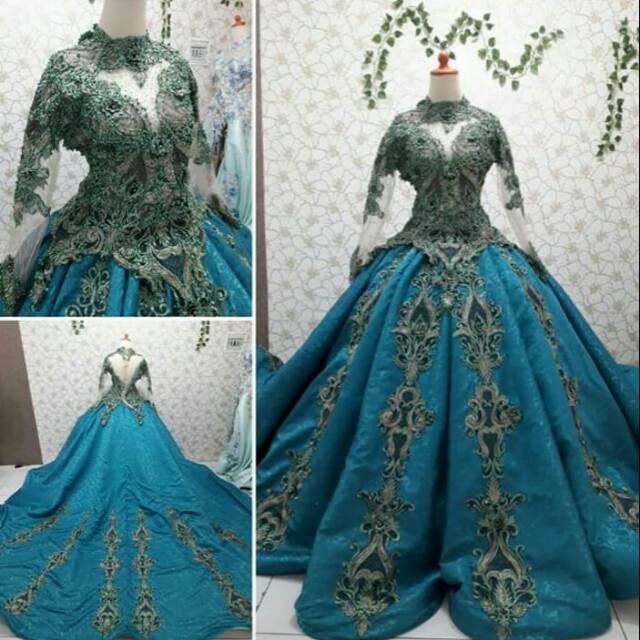 Gaun Pengantin Paprika Ekor Biru Turqoish Kombi Hijau Shopee