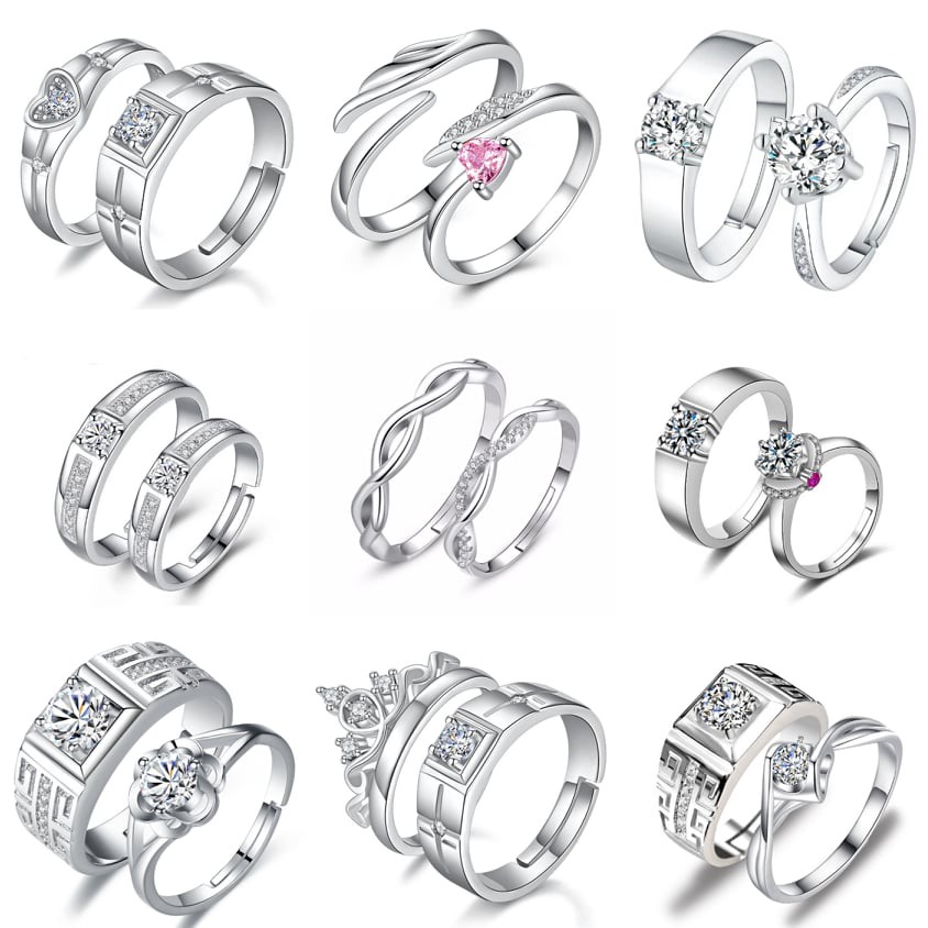 Ready Stock 925 Silver Women Men Couple Ring Adjustable Size