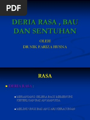 Deria rasa umami. Setiap sel penerima boleh mengesan satu rasa tertentu sama ada manis masin masam pahit atau umami. Orang yang tergolong dalam kumpulan perasa hebat mempunyai tunas rasa yang lebih banyak sebab itu mereka amat mudah mengesan rasa tertentu. Editor hamidisp published 7 01 2020 09 11 00 pm sejak dahulu lagi sering dinyatakan bahawa hanya ada 4 rasa asas yang boleh dikesan oleh lidah iaitu manis masin masam dan pahit dengan setiap kawasan. Boleh rujuk gambar di bawah untuk melihat bahagian manan untuk rasa umami itu rasa umami ini sukar untuk diterangkan dengan spesifik melainkan ia adalah rasa sedap yang diperolehi apabila makanan masuk ke dalam mulut kita.