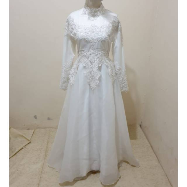 Jual Setelan Kebaya Akad Nikah Pengantin Putih Longtorso Muslim