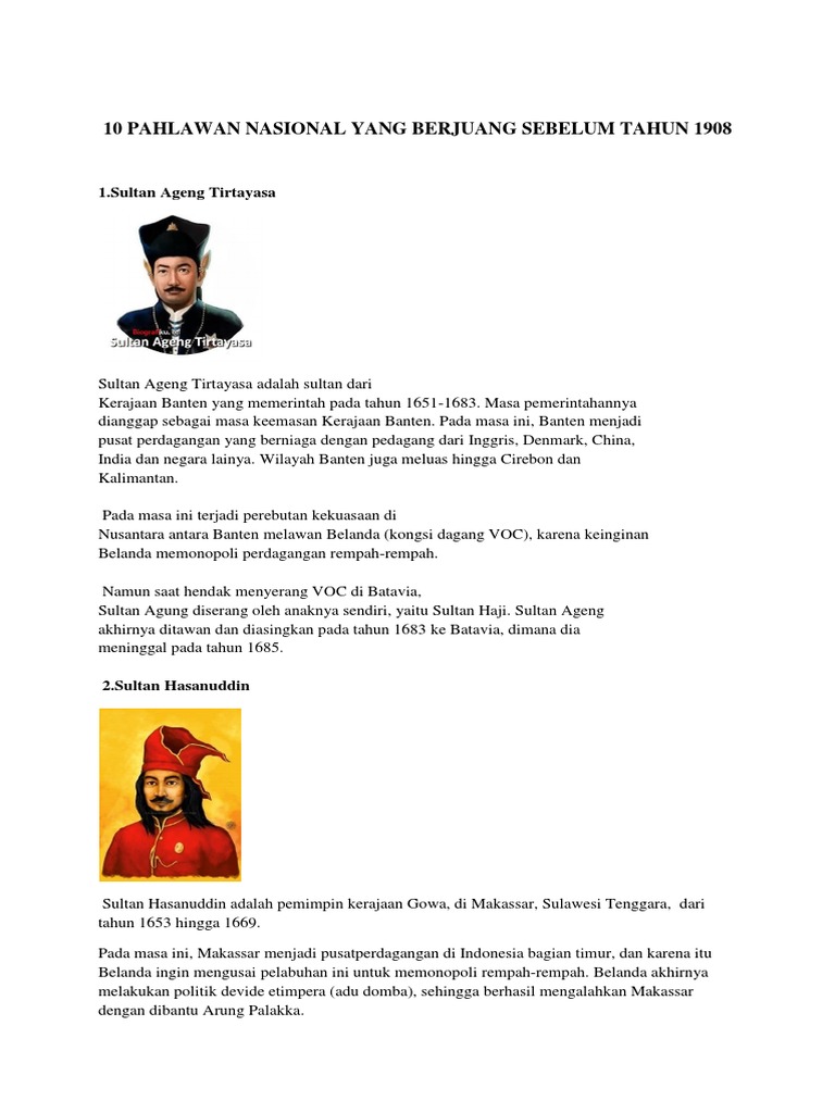 Tokoh Nama Nama Pahlawan Indonesia Sebelum Tahun 1908 Profil