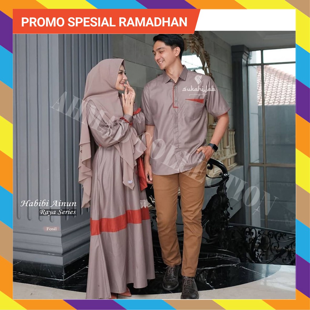 Cod Baju Gamis Couple Muslim Pria Wanita Dress Habibi Ainun Lengan Panjang Bahan Bagus Terbaru Shopee Indonesia