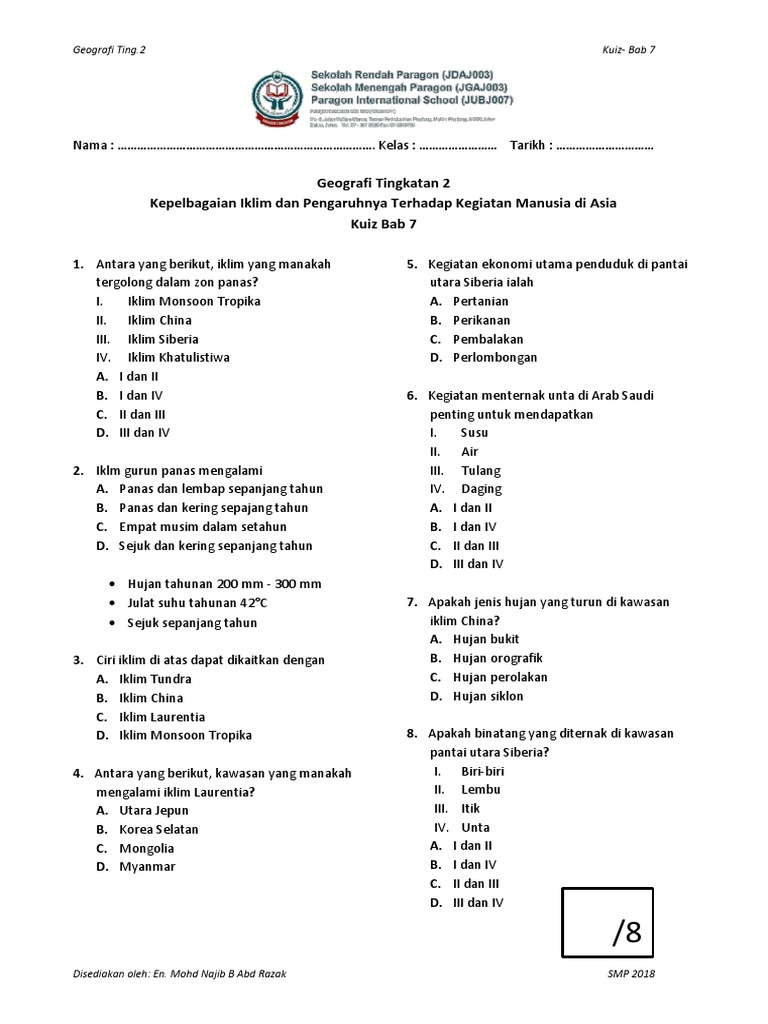 Kepelbagaian Iklim Dan Pengaruh Kegiatan Di Asia Lessons Tes Teach