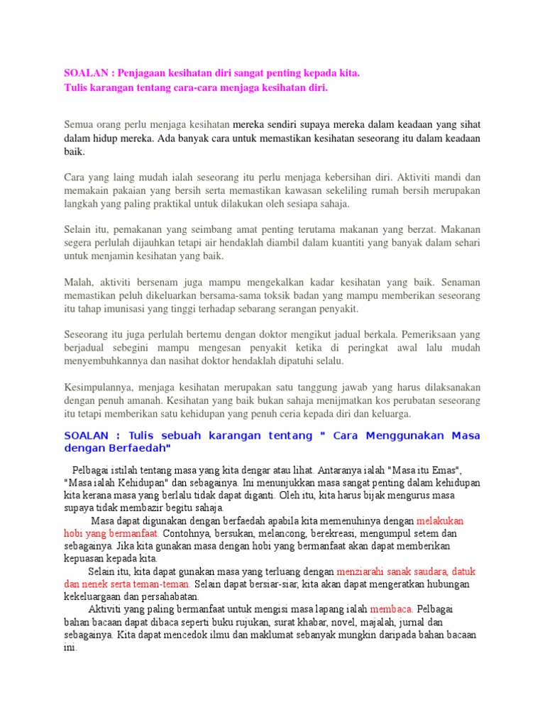 Karangan Cara Cara Menjaga Kebersihan Diri Tahun 5